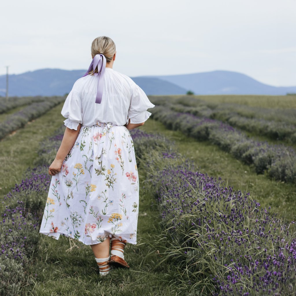 Doporučujeme si nechat na zavinutí alespoň 10 cm, aby se vám sukně zbytečně nerozevírala. Platí, že čím více centimetrů na zavinutí, tím lépe!