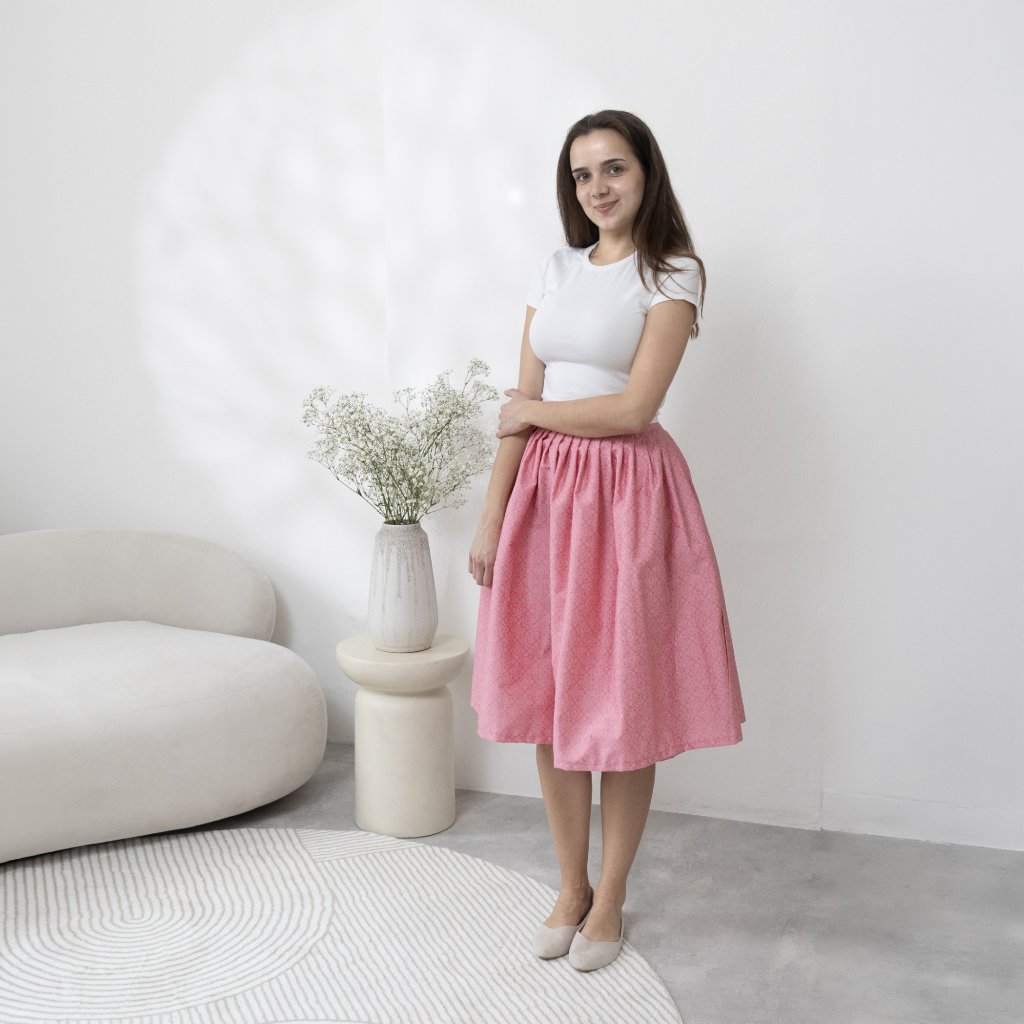 Doporučujeme si nechat na zavinutí alespoň 10 cm, aby se vám sukně zbytečně nerozevírala. Platí, že čím více centimetrů na zavinutí, tím lépe!