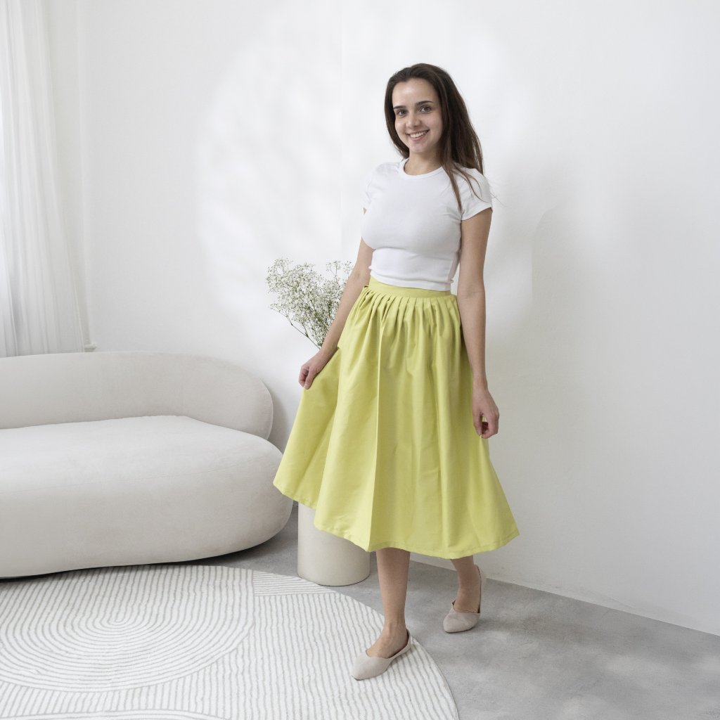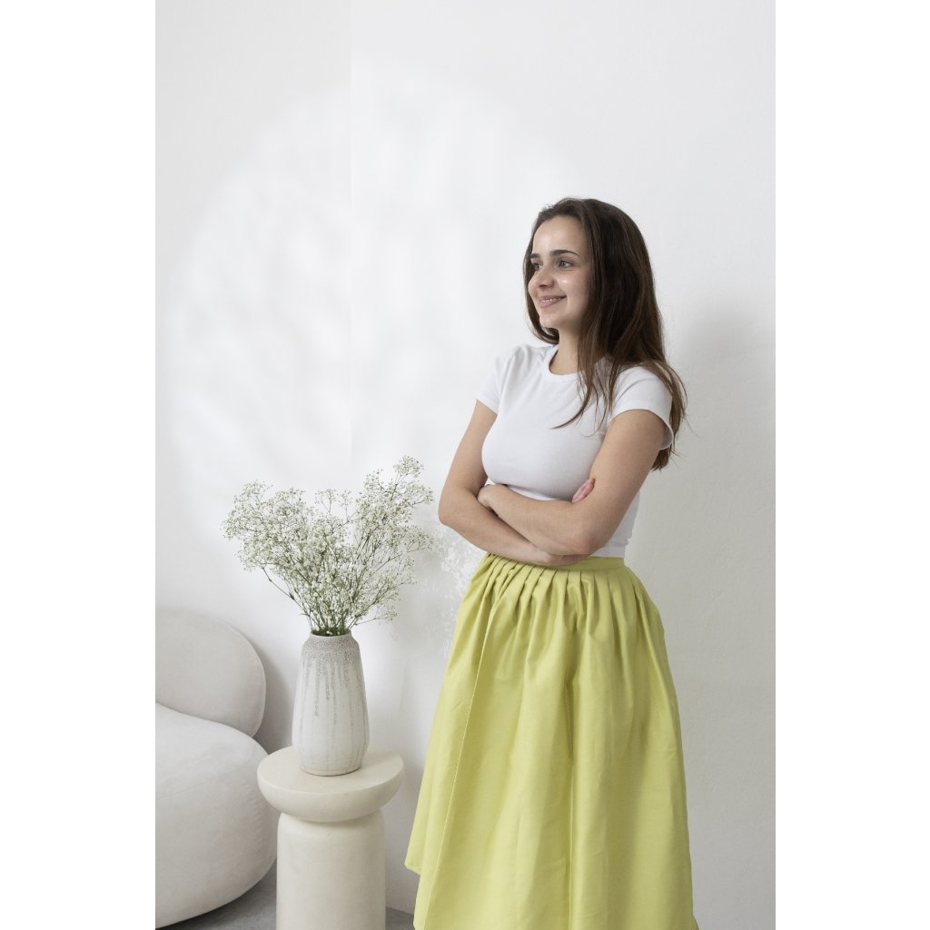 Doporučujeme si nechat na zavinutí alespoň 10 cm, aby se vám sukně zbytečně nerozevírala. Platí, že čím více centimetrů na zavinutí, tím lépe!