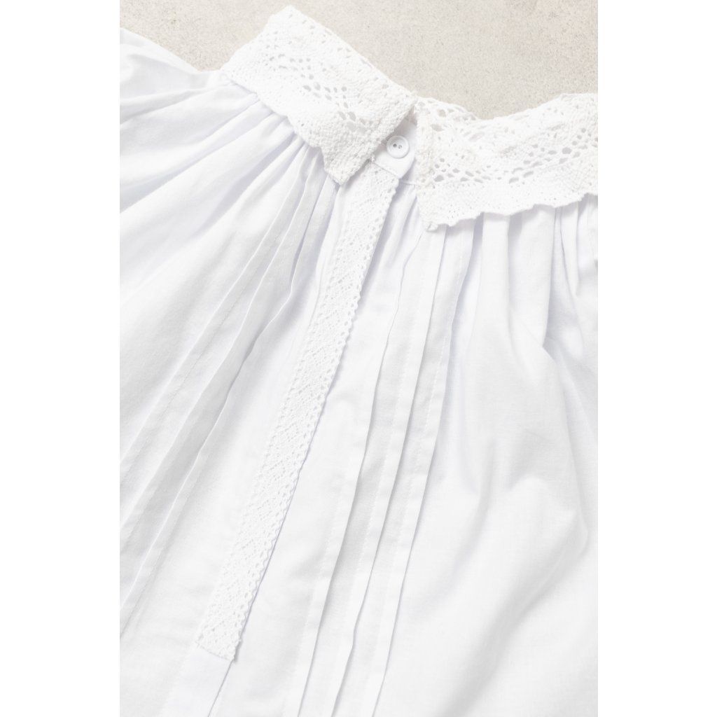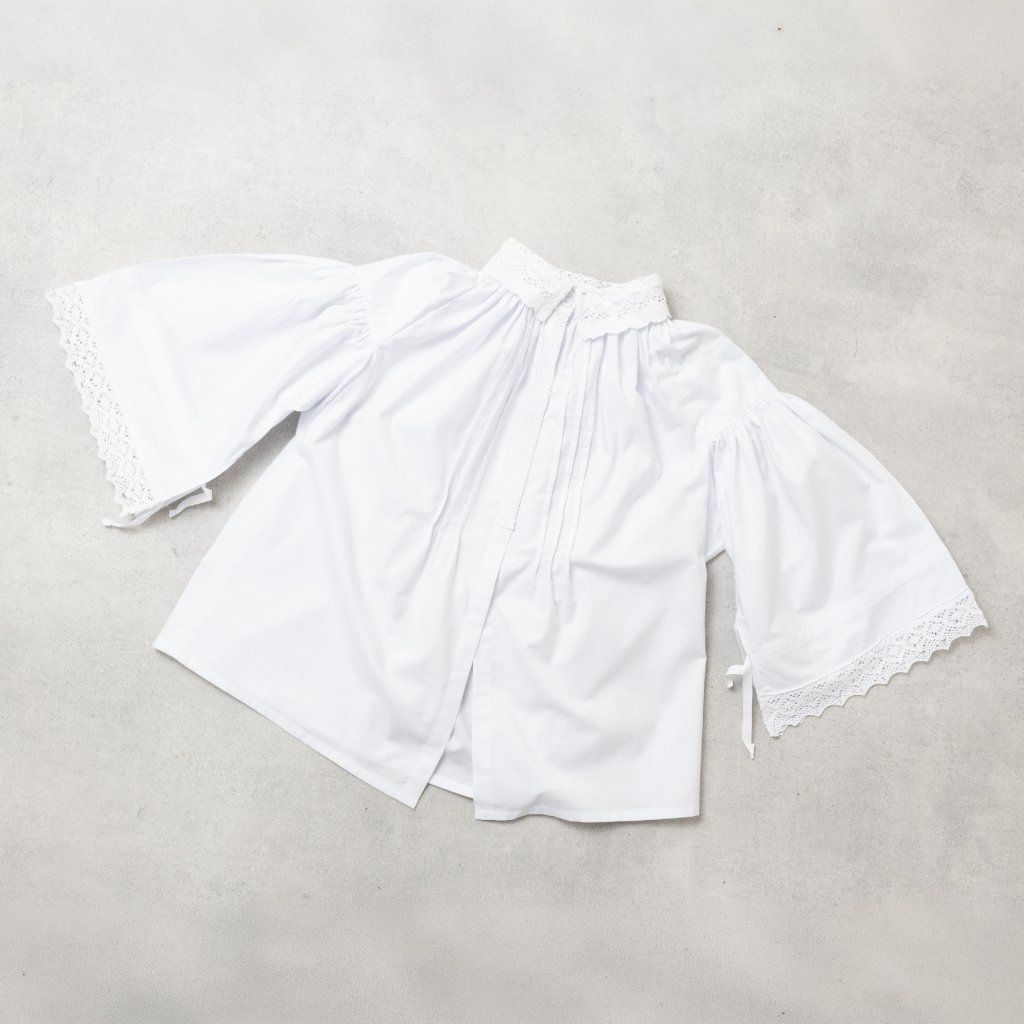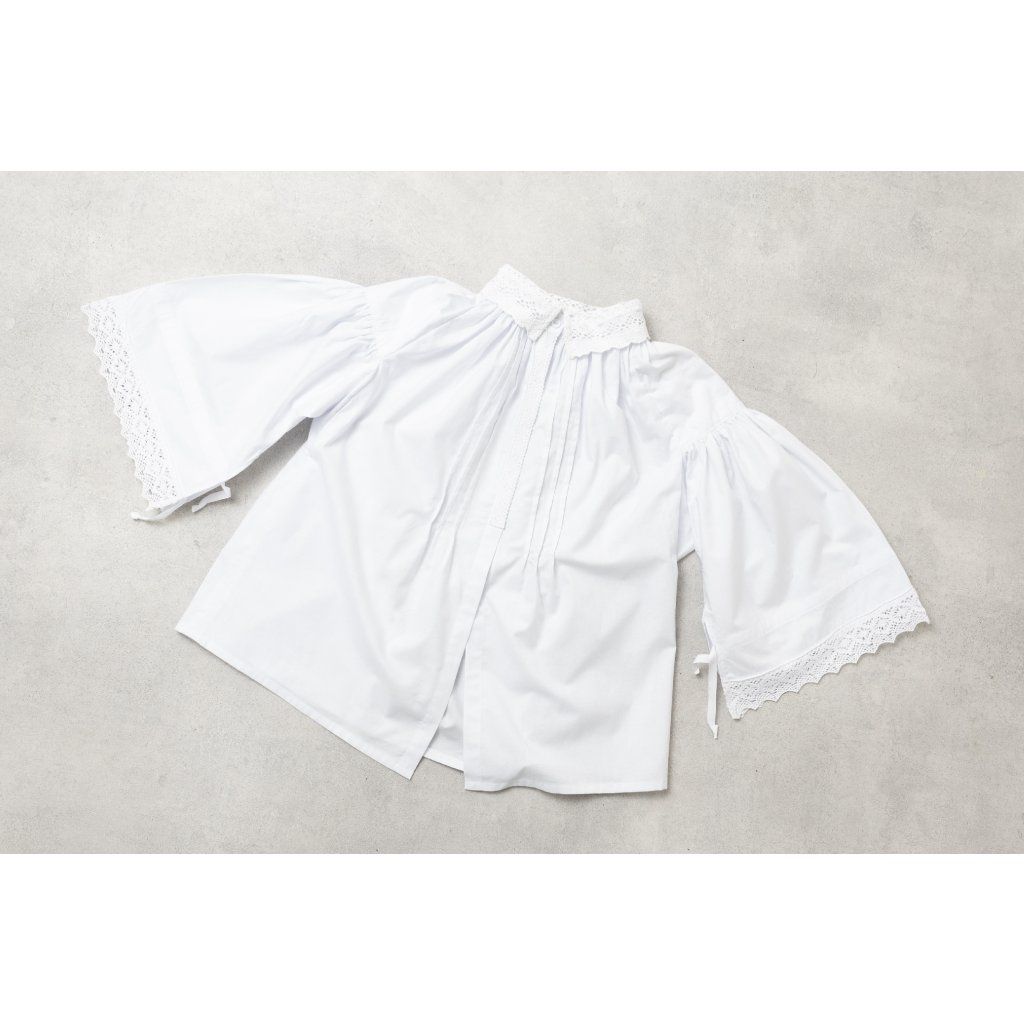 Rukávce jsou na rukávech a na límci zdobené krajkou.