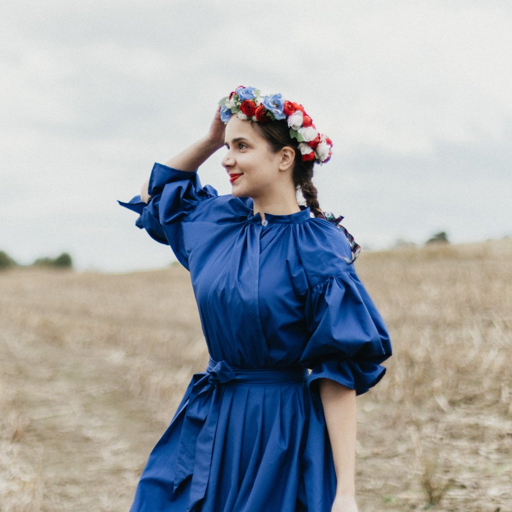 O něco světlejší než Floriána, ale stále nádherná. Skládaná sukně s vyšívanou stuhou v pase, to je láska na první pohled.