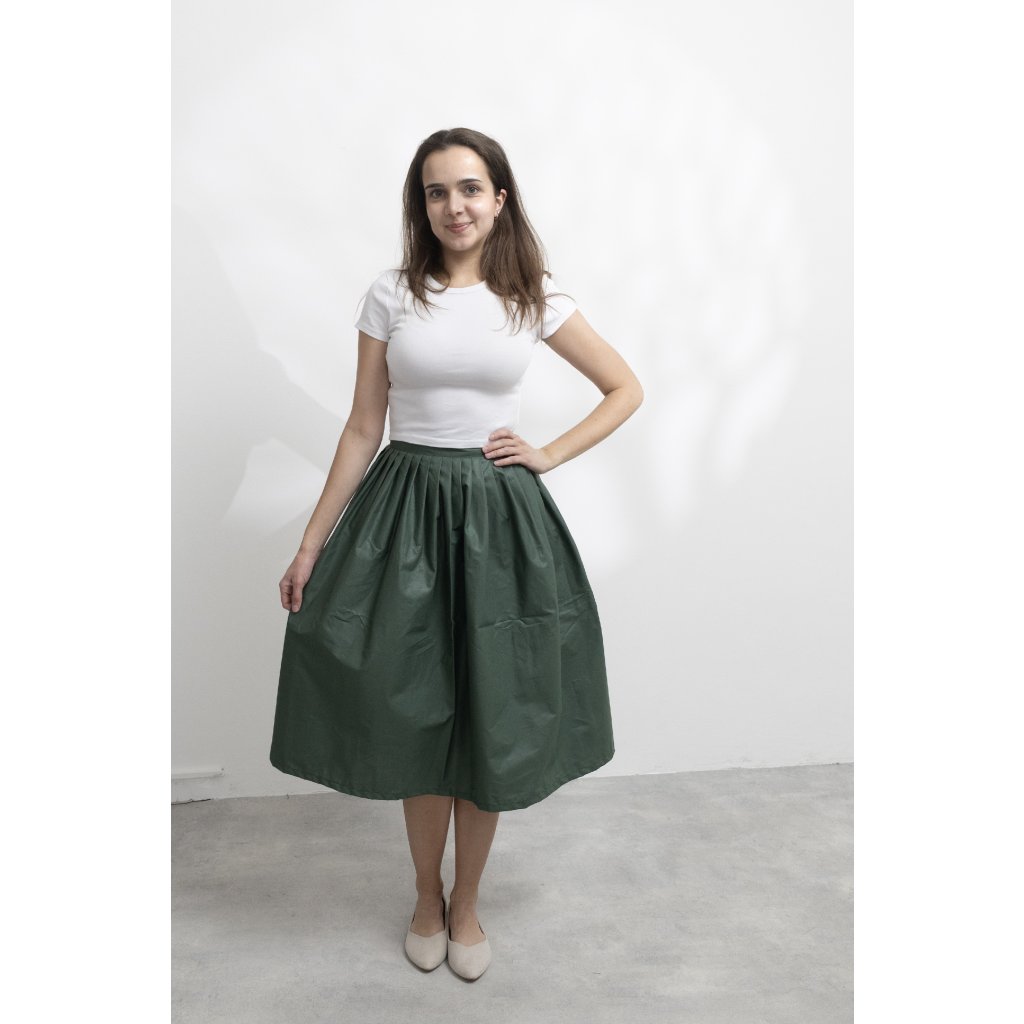 Doporučujeme si nechat na zavinutí alespoň 10 cm, aby se vám sukně zbytečně nerozevírala. Platí, že čím více centimetrů na zavinutí, tím lépe!